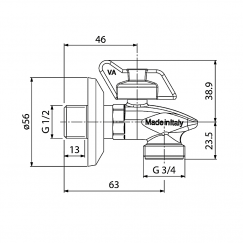VALVOLA BOCCHETTONATA A SQUADRA MF 3/4" FRONTALE ROSSA DX EFFEBI