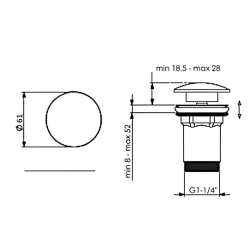 Piletta a vite click-clack in ottone cromato modello pesante per lavabo e bidet senza troppo pieno 1”1/4”