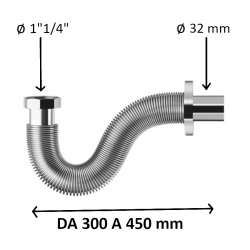Tubo di scarico BPS flessibile-estensibile in acciaio inox Dianhydro per lavabo, bidet, lavello