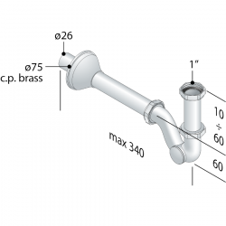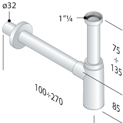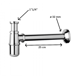 Sifone a bottiglia in ottone cromato per lavabo a vista 1”1/4 canna 25 cm VA Albertoni