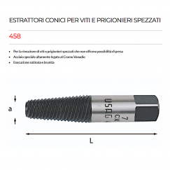 Estrattore conico per viti e prigionieri spezzati in acciaio al cromo vanadio USAG 458 24-33