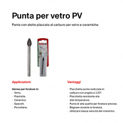 Punta a lancia da trapano al carburo PV fresa Fischer D.8 per vetro, piastrelle, ceramica, specchi, porcellana