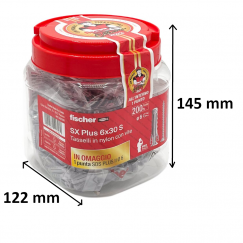 Barattolo di 200 tasselli Fischer SX Plus 6x30 S e punta per trapano Ø 6