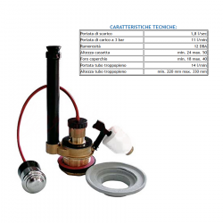 Batteria di scarico monoflusso sede ottone comando pneumatico senza galleggiante per cassetta in ceramica Tremolada 1000.212