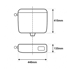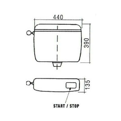 Batteria di scarico monoflusso in plastica comando pneumatico senza galleggiante per cassetta in ceramica Tremolada 160.212