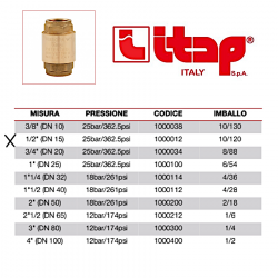 Valvola di ritegno da 1”1/2" F ITAP Mod. Europa per impianti idraulici, di riscaldamento, di condizionamento e pneumatici