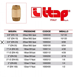 Valvola di ritegno da 3/4” F ITAP Mod. Europa per impianti idraulici, di riscaldamento, di condizionamento e pneumatici