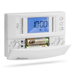 Cronotermostato digitale giornaliero bianco a batteria con display LCD Seitron Freetime Plus