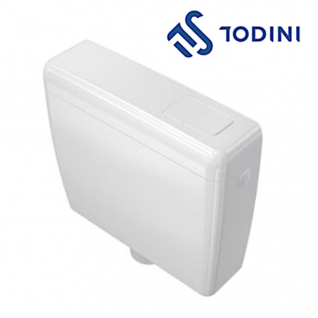 Cassetta zaino doppio scarico ITS Todini Mod. Easybox Dual completa di kit di montaggio, galleggiante e rubinetto d'arresto cromato